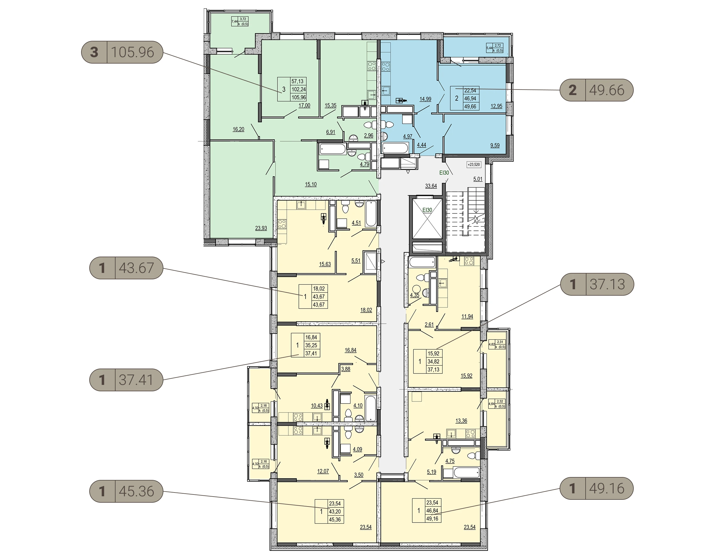 | 101 | 3 | Секция 4 | 7 | 105,96 | 11 019 840 ₽ |